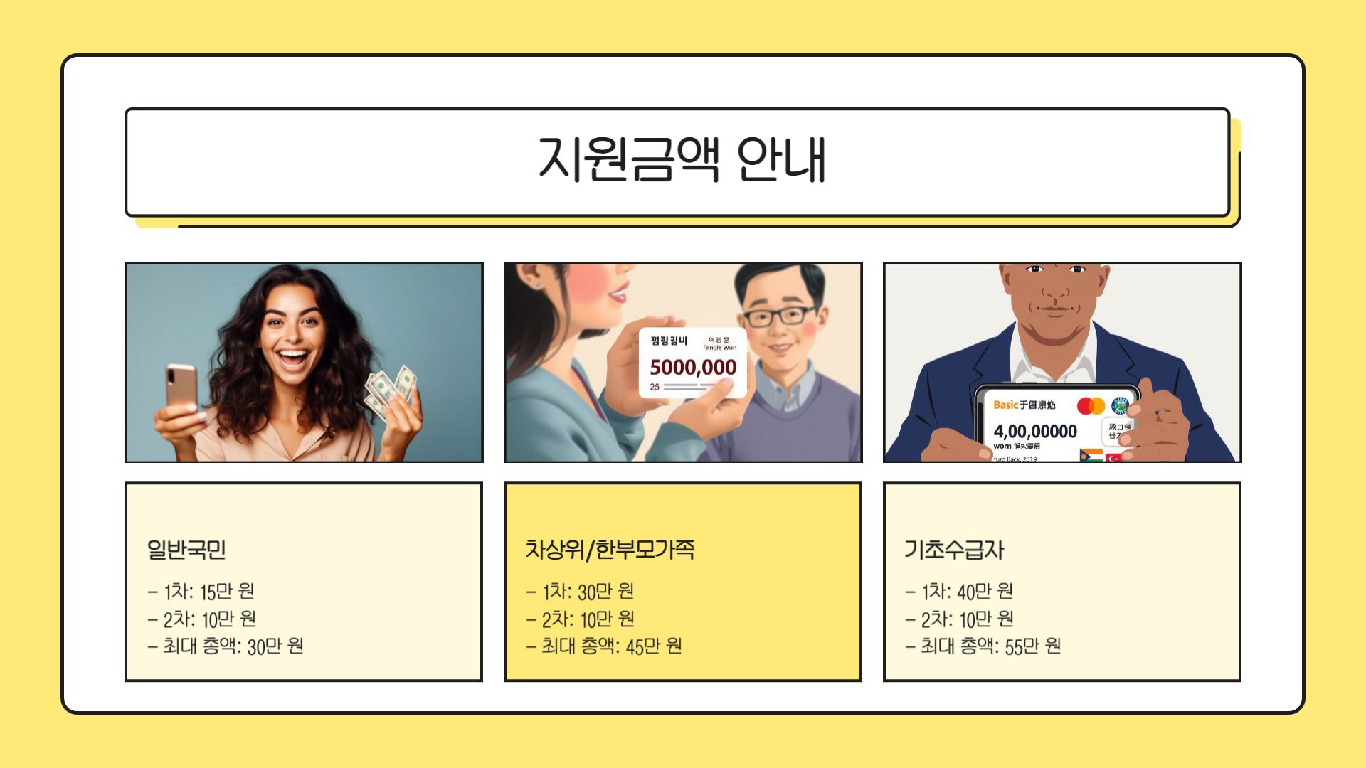 | 대상 | 1차 지원 | 2차 추가 | 최대 총액 |